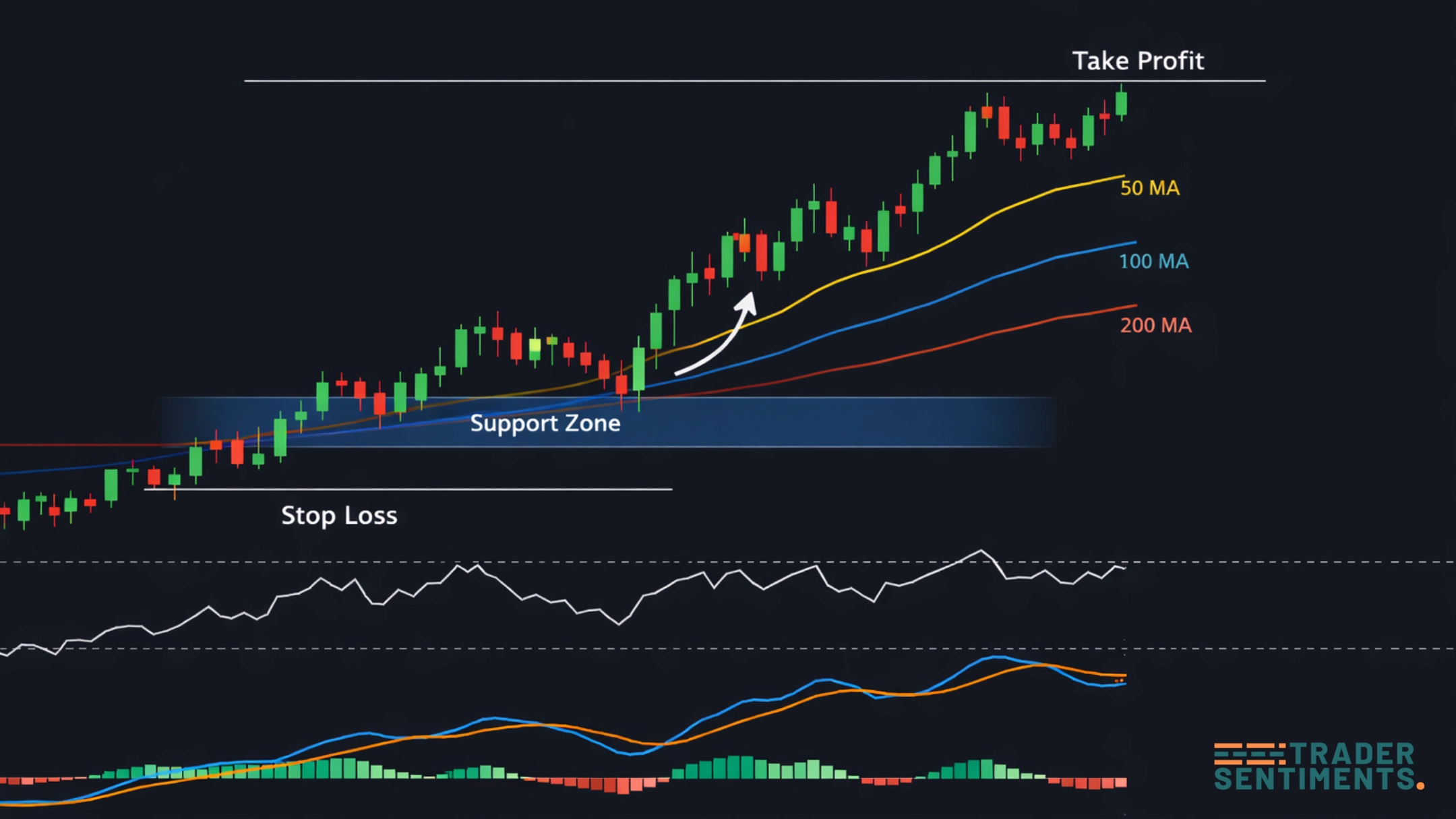 Trade with the trend after a controlled pullback into a key zone (MA / S&R / OB).